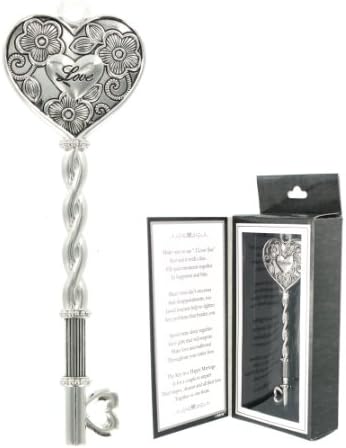 This Expertly Crafted, Solid Metal Key is a Symbol Of Unlocking a Happy Future With Your Partner"Love" & "Forever" Inscribed On The Front & BackIncludes a White Lace RibbonMeasures Approximately: 1-3/8 Wide x 4 Tall x 1/4 Thick (Inch)Makes a Great Anniversary, Wedding Gift, or Engagement The Key To A Happy Marriage ornament