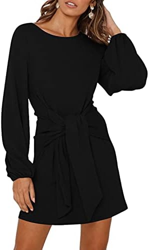 Selowin Women's Casual Tie Knot Waist Knitted Sweater Dress Long Sleeve Bodycon Sheath Belted Mini Dress